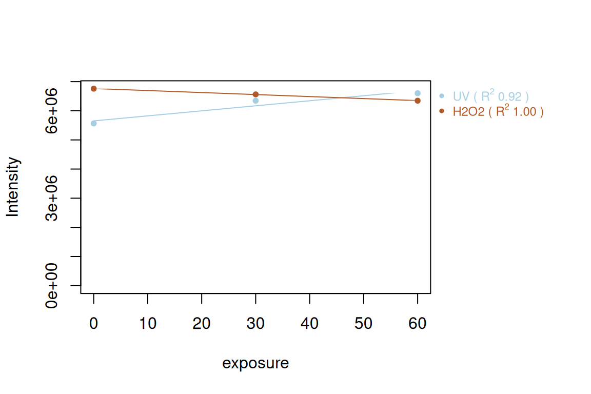 anaInfoRegr$experiment <- c("UV", "UV", "UV", "H2O2", "H2O2", "H2O2")
